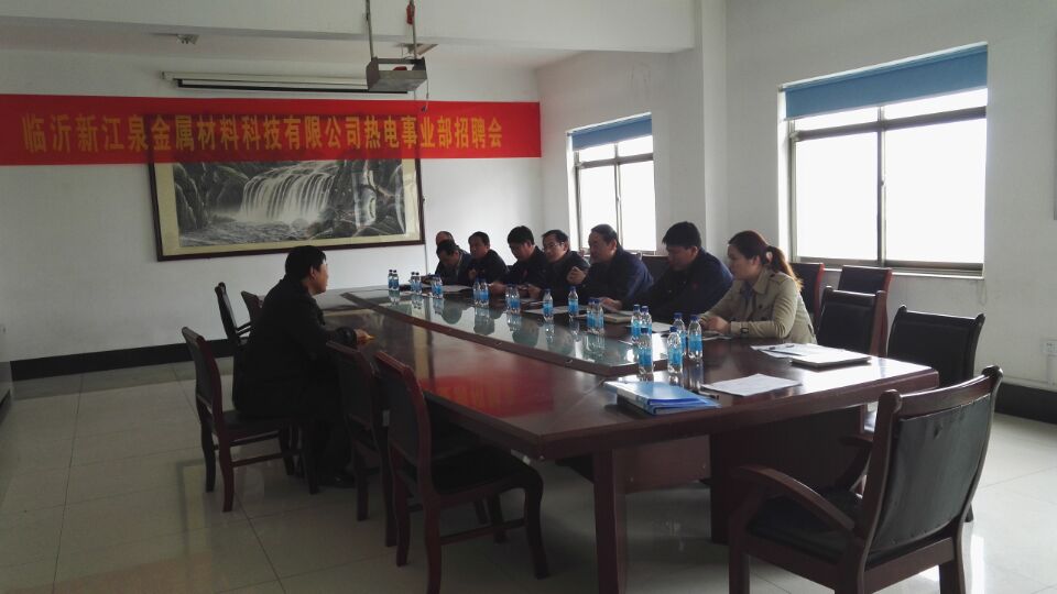 2016年3月15日臨沂新江泉金屬材料科技有限公司熱電事業(yè)部召開招聘會,此次招聘會由熱電事業(yè)部主辦集團(tuán)人力資源部協(xié)助舉辦。