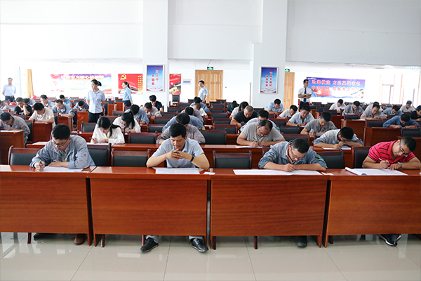 今年的筆試考卷由臨沂大學商學院老師出題,行政管理和生產(chǎn)管理兩大序列的考題為一套試卷,囊括了安全、節(jié)能環(huán)保、供銷、生產(chǎn)等多方面知識,所考題庫在一周前由人力資源部下發(fā)至每名參考人員進行先期學習。筆試考卷在考試前一個小時由專人負責從臨沂大學運送至考場,現(xiàn)場開封和發(fā)放。試題類型分為選擇題、判斷題、填空題、簡答題、案例分析題五個類型。全面考核了競聘員工們的綜合知識儲備、日常工作素養(yǎng)、管理方法和邏輯思維方式,旨在為集團選拔一批綜合素質(zhì)優(yōu)秀、培養(yǎng)潛力突出的復合型人才。